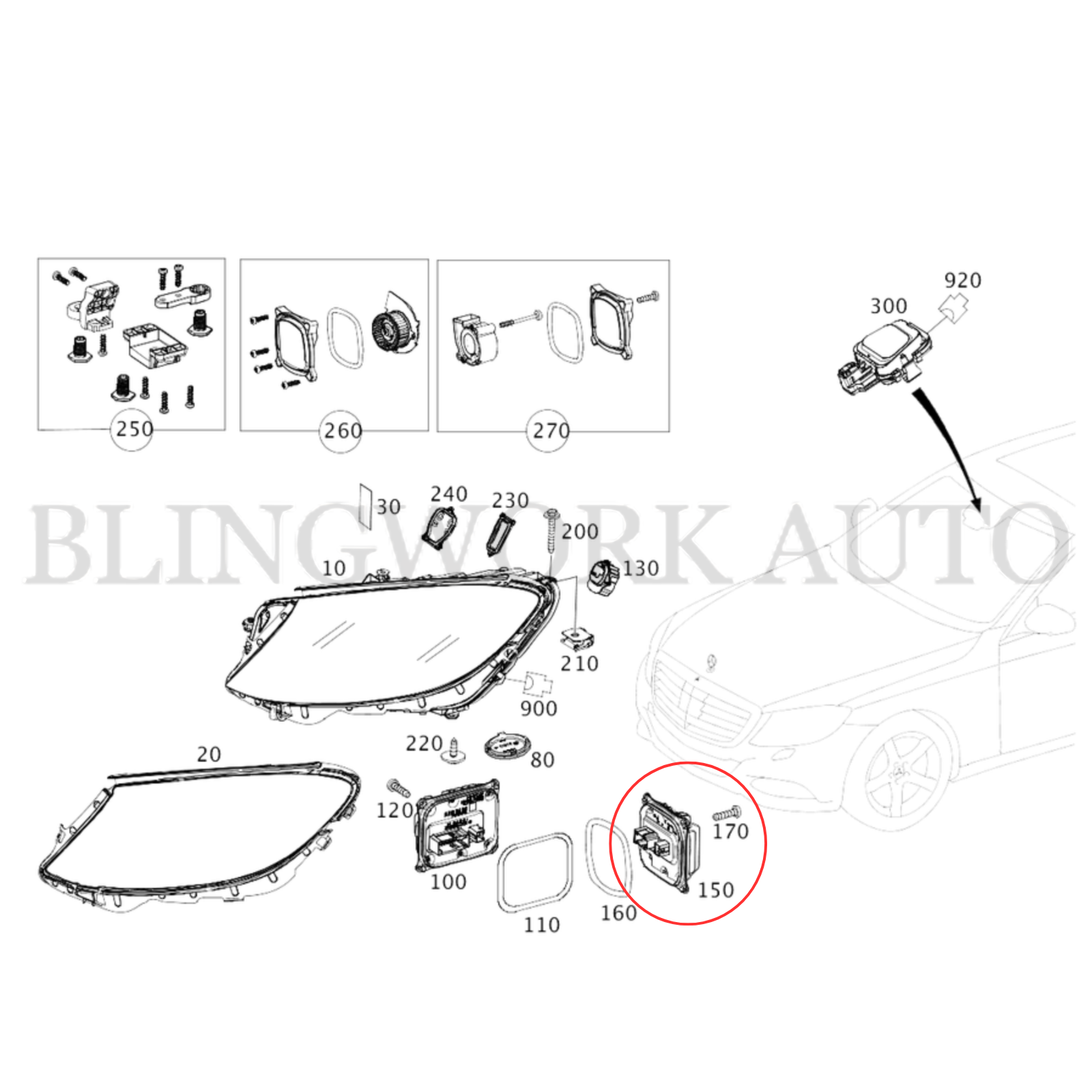 (1 PC) A2059009534 LED HEADLIGHT POWER CONTROL MODULE FOR 2015 -2017 MERCEDEZ BENZ C-CLASS W205 C205 S205 (1 UNIT)