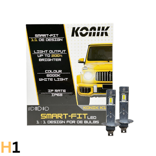 (PAIR) KONIK K100 SMART FIT H1 6000K WHITE LED CONVERSION KIT