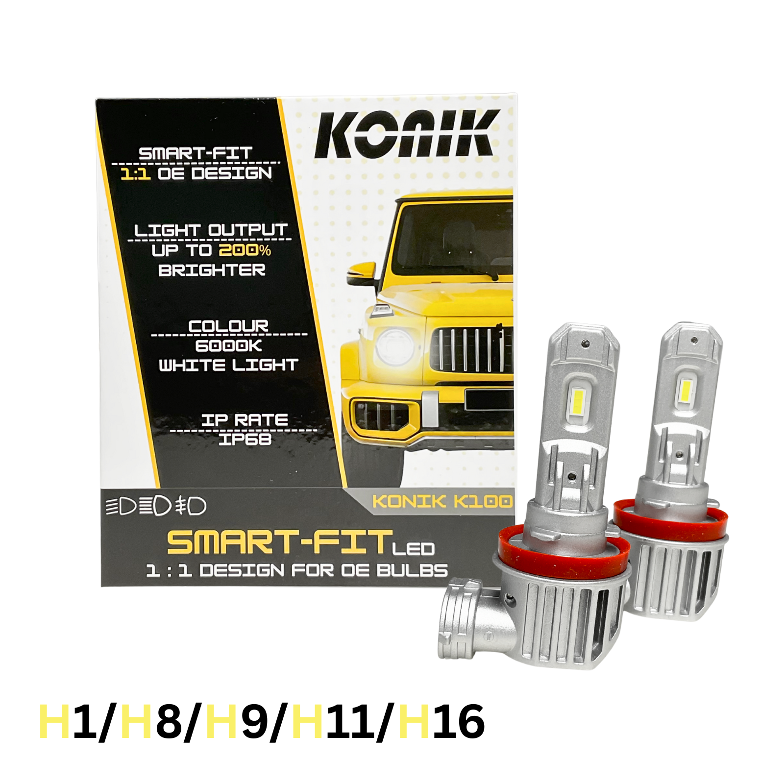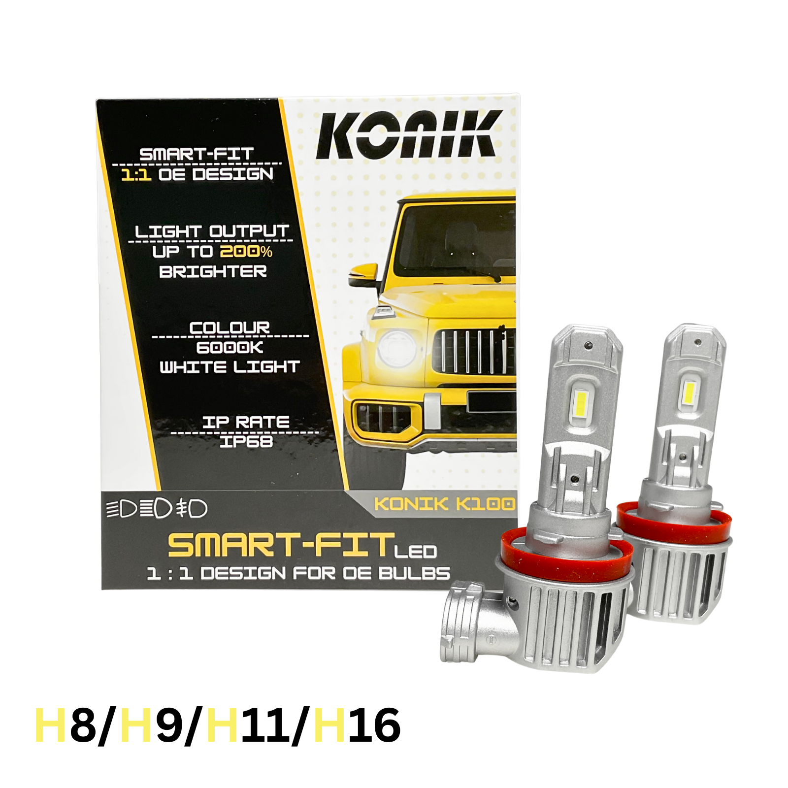KONIK K100 H8 H9 H11 H16 6000K SMART FIT LED Conversion Kit